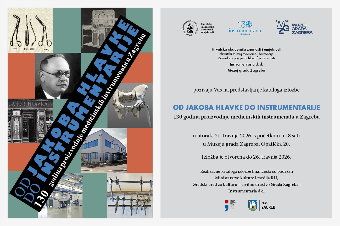 U utorak 21. travnja 2026. u 18 sati u Muzeju grada Zagreba, Opatička 20, Zagreb, održat će se predstavljanje kataloga izložbe Od Jakoba Hlavke do Instrumentarije: 130 godina proizvodnje medicinskih instrumenata u Zagrebu čiji je nakladnik Hrvatski muzej medicine i farmacije Hrvatske akademije znanosti i umjetnosti. Bogato ilustrirani katalog opsega 97 stranica, s tekstom na hrvatskom i engleskom jeziku, izdan je uz istoimenu izložbu organiziranu povodom 130. obljetnice osnutka tvornice Jakoba Hlavke u Zagrebu, čiji je sljednik tvrtka Instrumentaria d.d. Autorice izložbe i kataloga su Silvija Brkić Midžić i izv. prof. dr. sc. Stella Fatović-Ferenčić, dr. med., a vizualni identitet, likovni postav izložbe te grafičko oblikovanje kataloga potpisuje Ante Rašić. Na predstavljanju će govoriti voditelj Hrvatskog muzeja medicine i farmacije HAZU akademik Marko Pećina, recenzenti kataloga prof. dr. sc. Darko Antičević, dr. med. i predsjednik Hrvatsko-češkog društva Marijan Lipovac, suurednica i koautorica teksta kataloga prof. dr. sc. Stella Fatović-Ferenčić te u ime obitelji Hlavka prof. dr. sc. Vladimir Hlavka, dr. med., unuk Jakoba Hlavke.